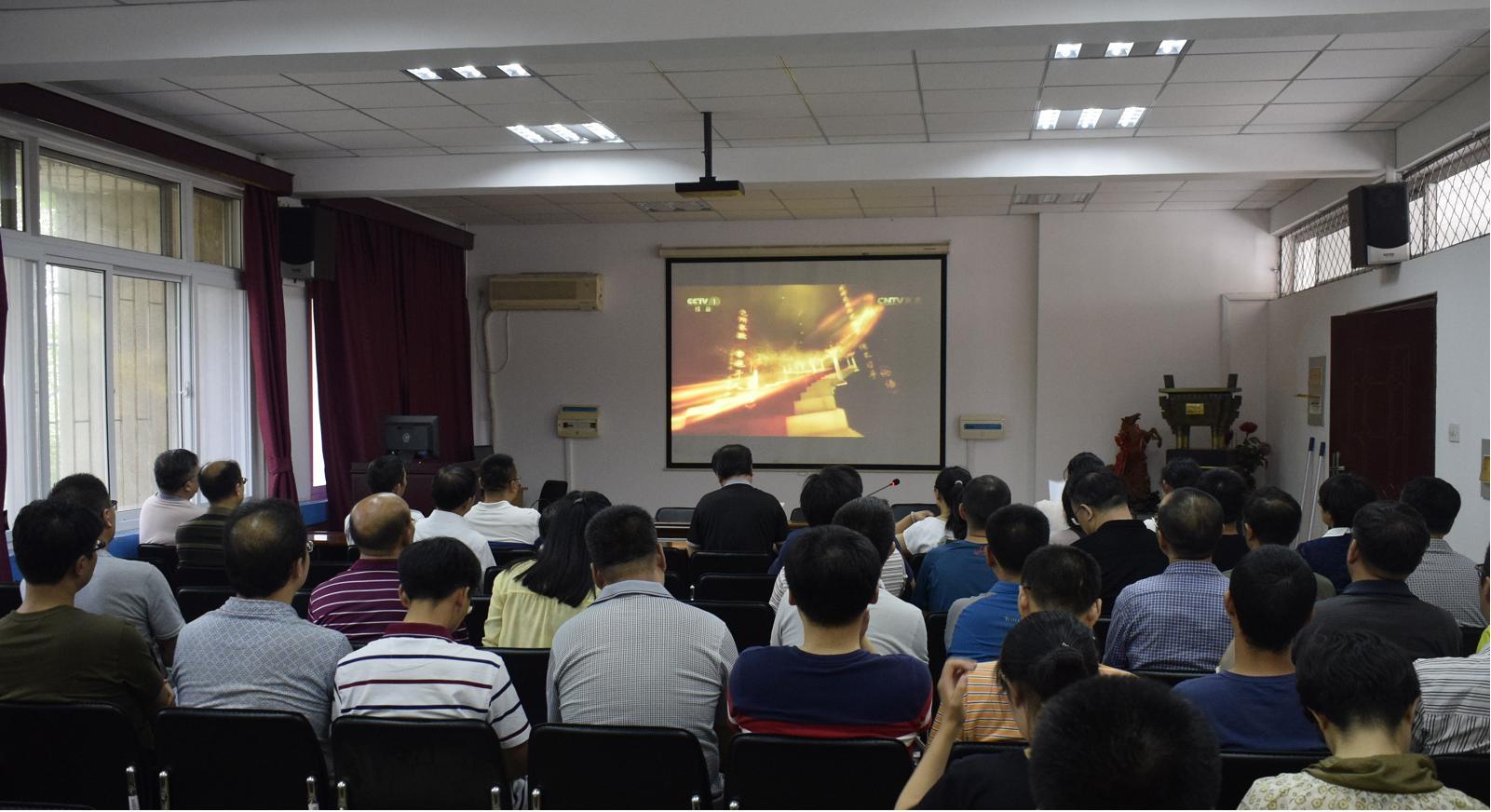 在建筑馆211召开全院大会,组织全体教师观看《时代楷模发布厅》发布廖俊波先进事迹的视频,集中学习廖俊波同志的先进事迹。