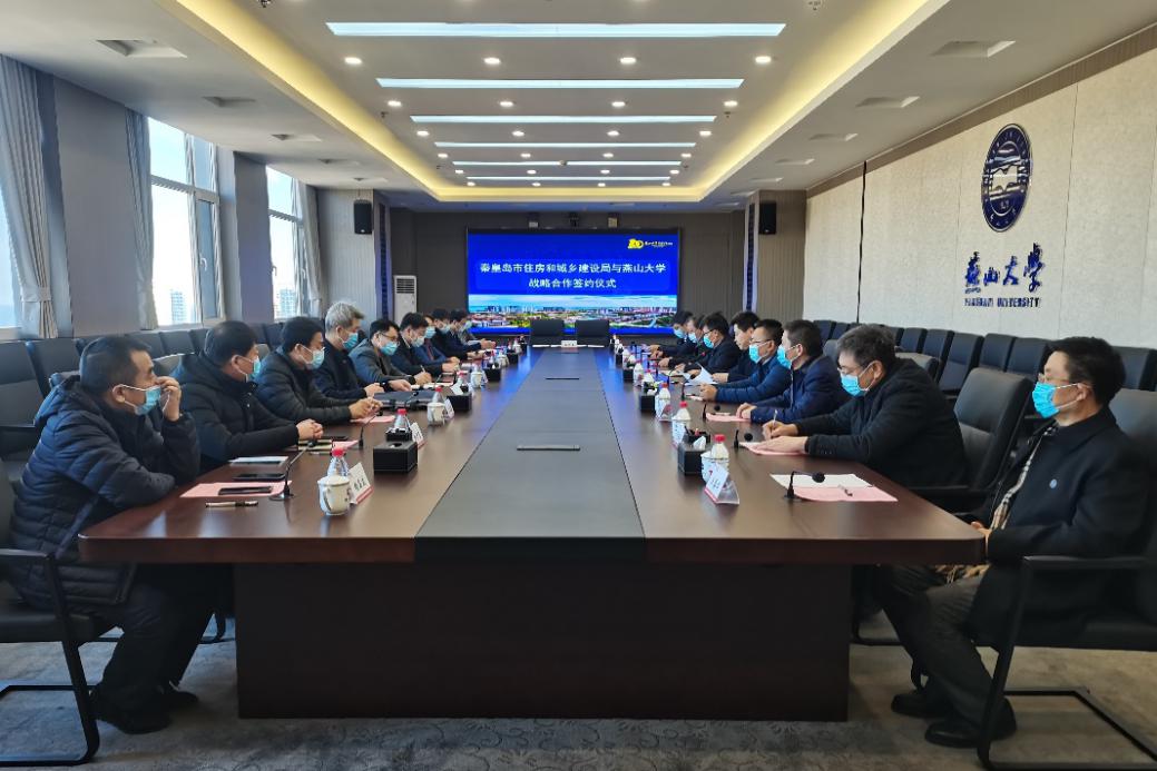 与秦皇岛市住房和城乡建设局战略合作签约仪式在世纪楼2103会议室隆重举行。市住建局党组书记、局长石兆旭,总工程师吉海松,四级调研员王宏琴,各职能科室主要负责人,91在线