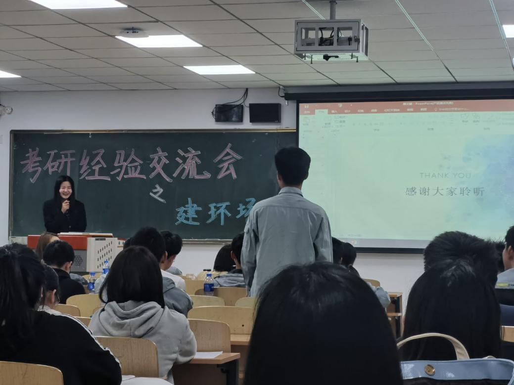 其次,为了让同学们深入了解研究生的学习生活,本次经验交流会专门邀请了曾在北京工业大学、天津大学读研的校友,在线与同学们分享了考试准备、导师选择和课题研究等方面的经验,并给同学们讲解了研究生毕业后的主要就业方向和工作内容。校友们精彩的分享赢得了现场同学的阵阵掌声,将分享会推向高潮。