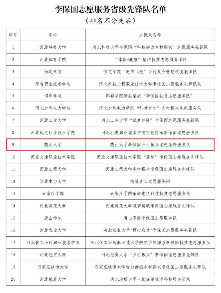 教育厅公布了《李保国志愿服务省级先锋队名单》,由校团委牵头、91在线
