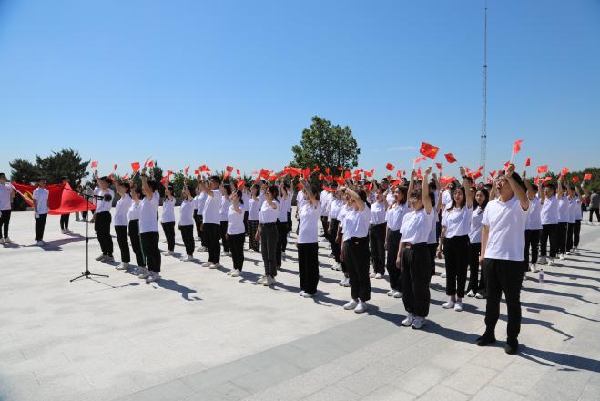 学生党支部100名学生党员来到五峰山李大钊革命活动旧址参观学习。
