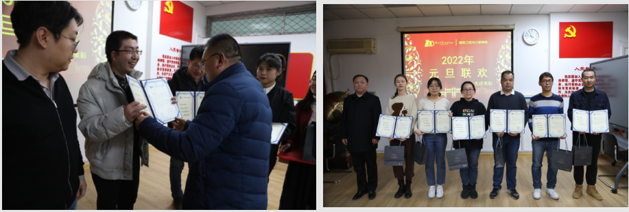 对2021年度各条战线上取得优异成绩的教职工进行了表彰。这其中既包括获得教学创新赛全国二等奖的李文涛老师、教学案例获评第一届全国力学类专业优秀课程思政案例的郝颖老师,也有带领团队致力球墨铸铁热力管道新技术研发的李岩老师、成功转化6项专利的曹海莹老师,还有在管理岗位上为教职工提供优质服务的侯立娜老师、指导学生社会实践、获评“全国优秀团队”的赵广华老师。各尽其职,各展其能,他们都是2021年度91在线