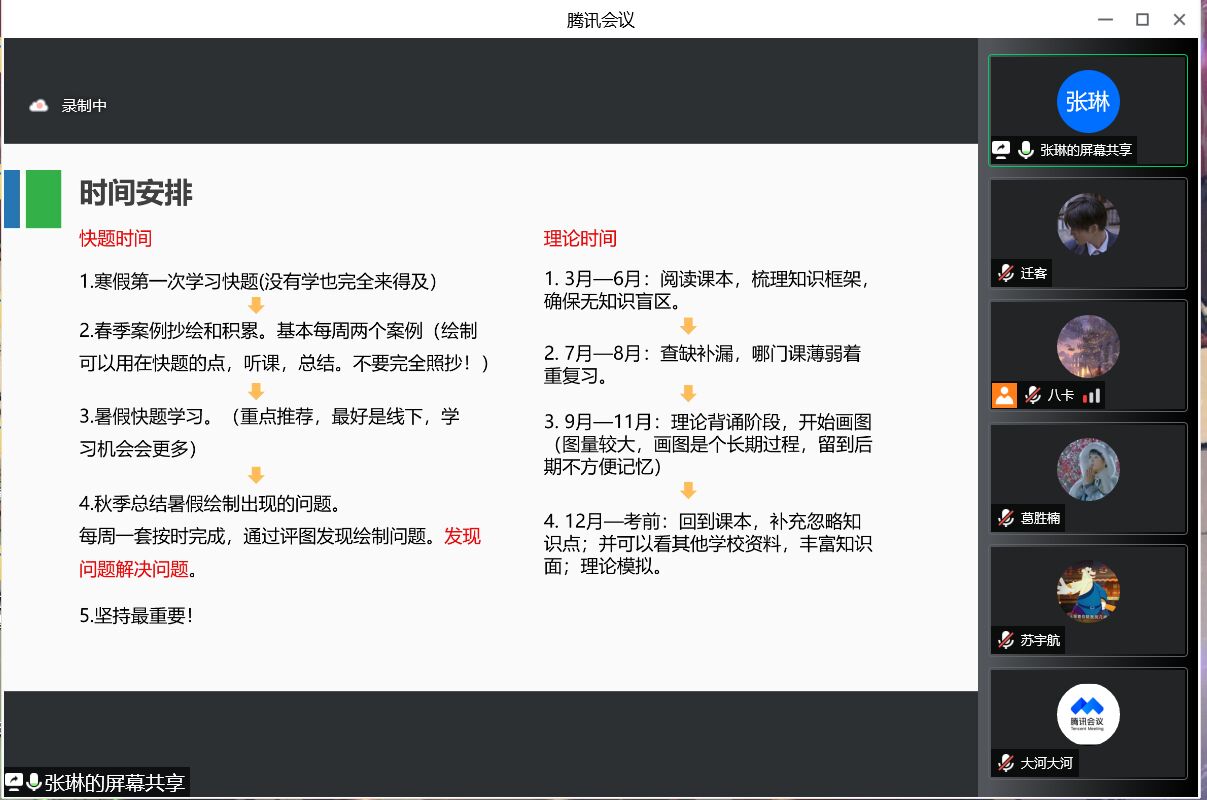 开展了题为“一研为定、一战成硕”线上考研经验交流会。2022年研究生招生考试成绩优秀的6名同学受邀担任本次交流会的分享嘉宾,杨毅同学担任主持人。
