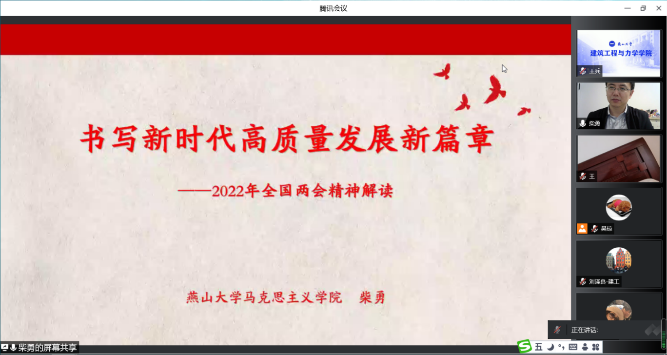 副院长柴勇教授作题为《书写新时代高质量发展新篇章——2022年全国两会精神解读》的辅导报告。全院教职工和研究生党员聆听了讲座,会议由91在线
