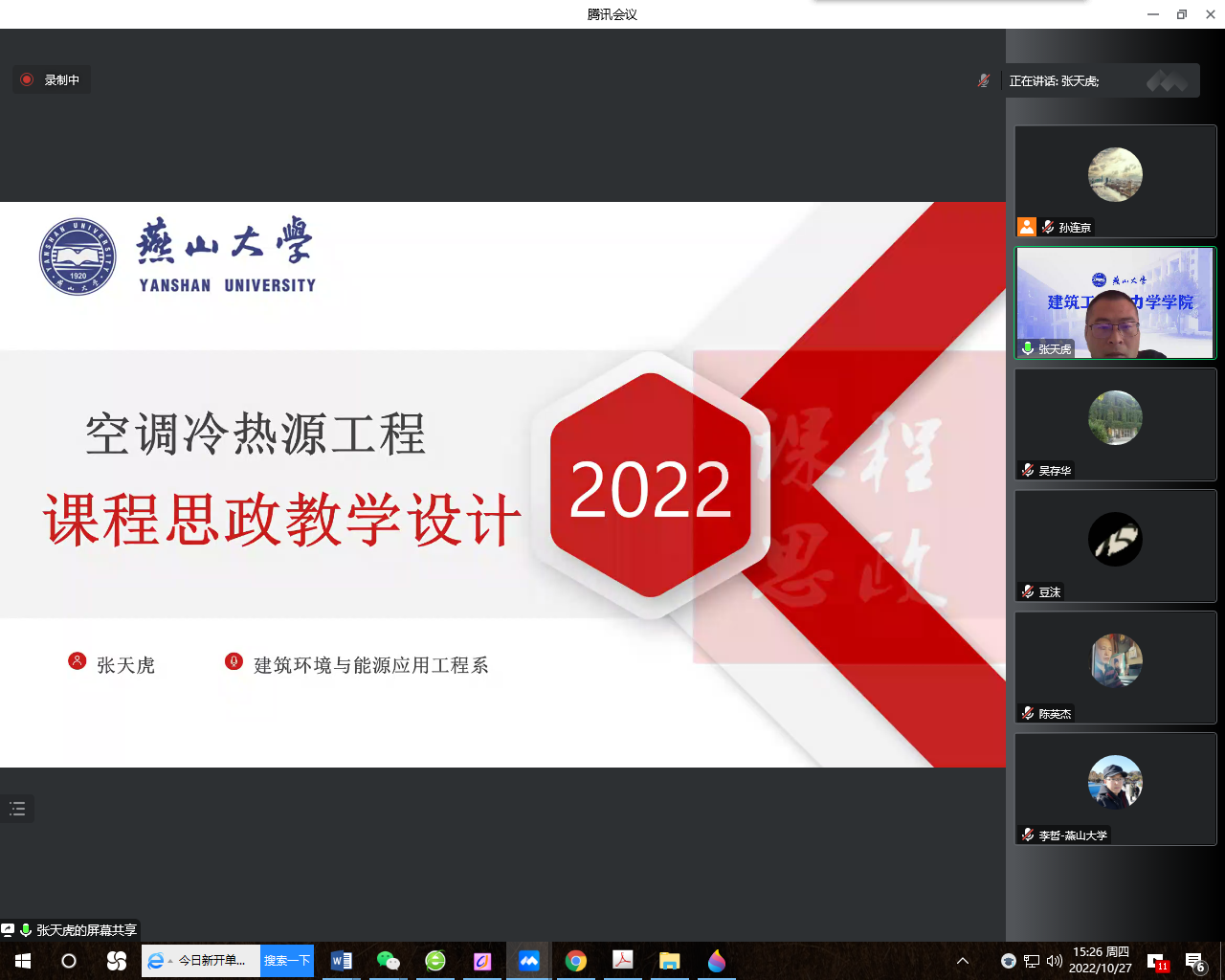 于2022年10月27日下午通过腾讯会议在线举办了第六届课程思政教学竞赛。全院教师观摩了比赛。