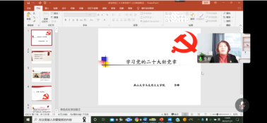 李老师阐述了中国共产党章程的重要历史地位和鲜明特点,浓缩提炼了党章的百年发展历程,也折射出我们党从小到大、由弱到强的发展历程。并结合党的二十大报告,解读新党章的新要求,进一步加深在座党员们对党的创新理论的认识。她指出,党章是党的根本大法,是立党、治党、管党的总章程,是全党必须遵循的总规矩。要牢固树立党章意识,要结合共产党百年历史和党的二十大报告进行学习,学懂、弄通、做实,自觉增强党性修养,内化于心,外化于行,做到知行合一。