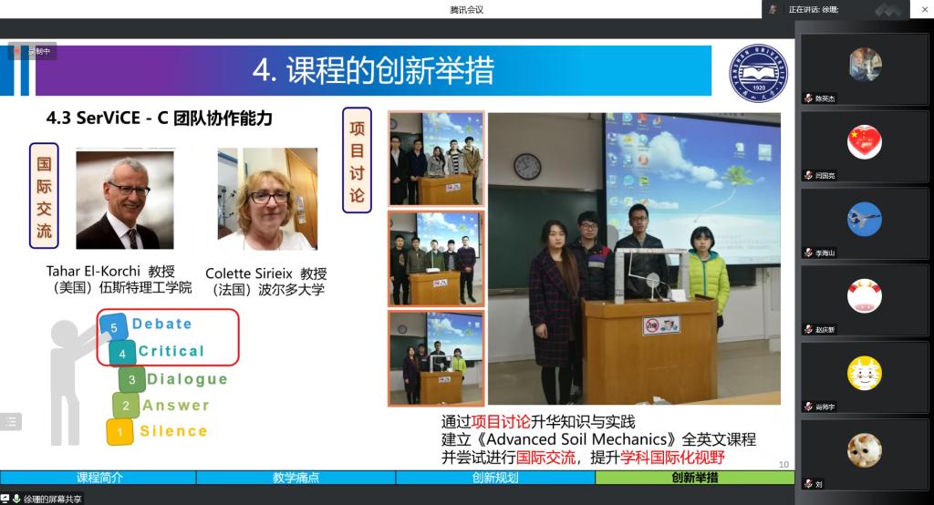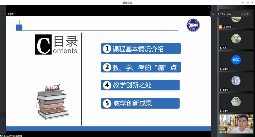 从本科教学评审评委库中随机抽选了5位专家评委组成本次大赛的评审组。为了保证院赛与校赛的有机衔接,选拔出优秀选手参加校赛,本次大赛比照学校的竞赛流程和评分标准进行。比赛分书面评审和现场评审两个环节。参赛教师的课堂教学实录视频、教学创新成果报告等材料由评委在赛前以书面形式进行评审。现场评审环节,参赛教师结合教学大纲与教学实践用PPT进行不超过15分钟的教学设计创新汇报,并与评委进行10分钟的提问交流。比赛结束后,各位评委对参赛教师逐一进行了针对性的精彩点评,并就如何改进与提高提出了许多中肯的建议。经过激烈竞逐,最终产生一等奖3名,二等奖4名。经评委评议,决定推荐王鼎、杜胜华、杨昆三位老师代表91在线