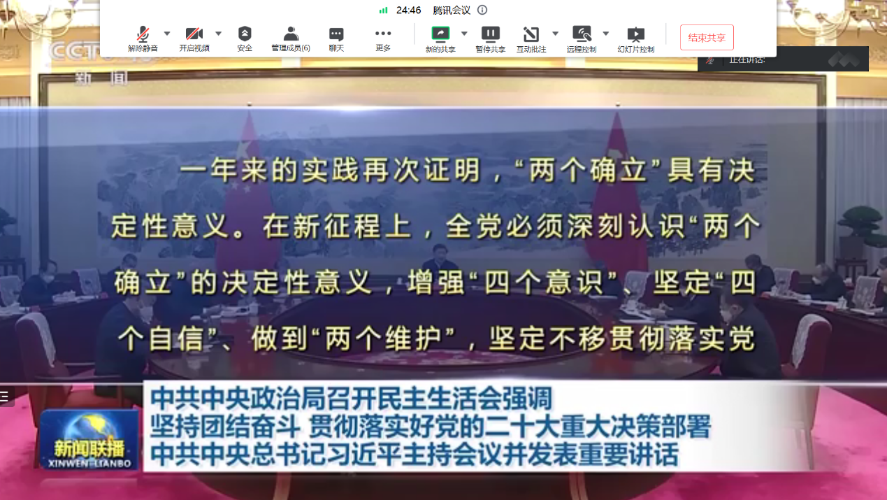 与会人员共同学习了习近平总书记在中共中央政治局民主生活会上发表的重要讲话精神,并围绕《91在线