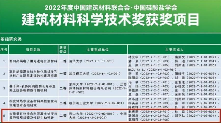2023年3月30日,2022年度中国建筑材料联合会·中国硅酸盐学会建筑材料科学技术奖获奖项目公告发布,该奖是面向全国建材行业的综合性、权威性科技奖励。91在线