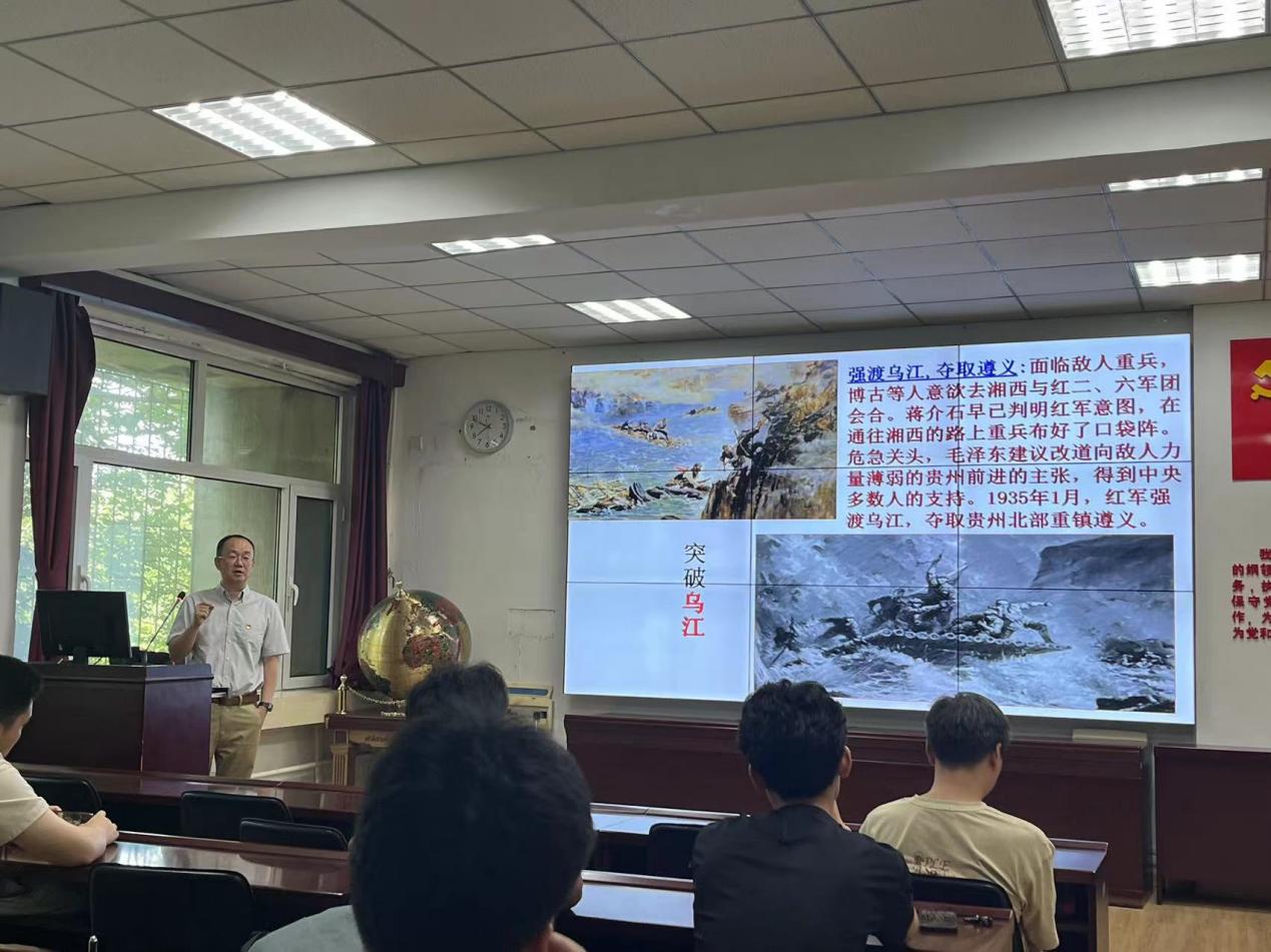 学生党员代表,以《从中国工农红军长征胜利再看两个确立的历史意义》为题讲授主题教育专题党课。他从“中央红军为什么要长征?”“长征从何时开始、从哪里出发的?”等13个问题入手,带领学生党员学习长征的历史及其伟大精神。胡建军强调,大到国家建设,小到党员的自身发展,都离不开长征精神的指导。全院师生要以长征精神为指引,坚定信念、不畏艰险、锚定目标、勇往直前,一步一个脚印,走好91在线