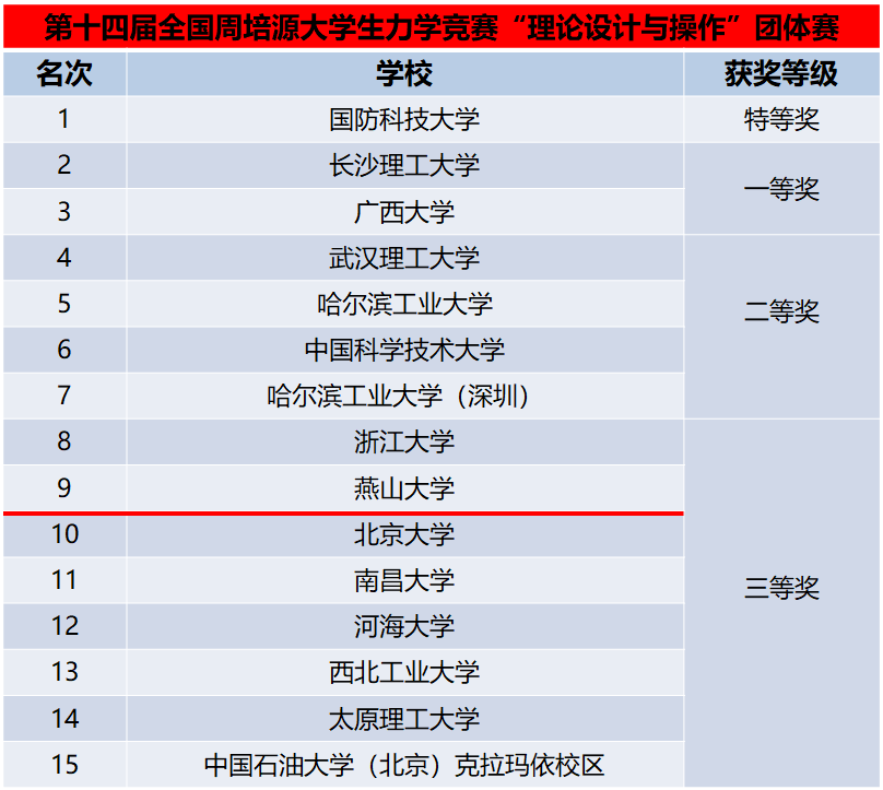 全国周培源大学生力学竞赛分个人赛和团体赛两部分。个人赛综合排名在全国前三十名,或各省综合排名第一名的高校将获得团体赛参赛资格。第十四届全国周培源大学生力学竞赛个人赛于2023年5月21日举办。团体赛总共有46所高校参赛,于2023年8月11日至2023年8月18日在哈尔滨和成都分两个竞赛单元举行。