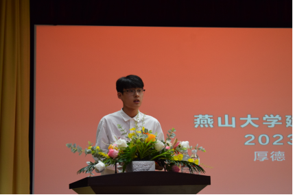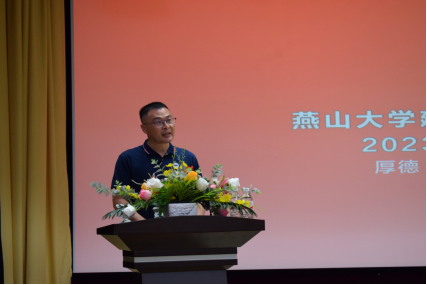 下午4点,典礼在雄壮的国歌声中拉开帷幕。五位院领导为来自全国不同地区的的40名新生代表佩戴校徽,沉甸甸的校徽,见证着新一代建工学子在燕园开启人生新的篇章。2021级建筑学专业王茹同学作为在校生代表发言,表达了对2023级新生的诚挚欢迎,希望他们珍惜燕园这段旅程,带着向上的力量,逐梦青春、不负韶华。2023级土木类专业马启凡同学作为新生代表发言,表示将牢记“厚德、博学、求是”的校训,不负师长嘱托,刻苦学习、积极进取,绽放绚烂青春。建筑环境与能源应用工程系主任张天虎老师,分享了自己的求学经验,勉励新生们要坚守理想信念,厚植家国情怀,以奋斗之青春书写时代之华章。