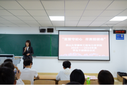 于10月12日开展2023——2024年度2023级全体学生干部聘任仪式,新生辅导员张娟娟、邓闰芳及91在线
