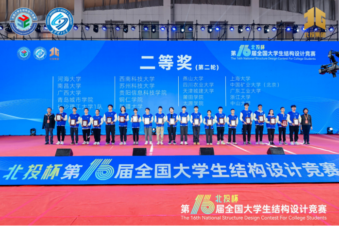 参赛队伍与来自清华大学、浙江大学、同济大学等在内的118所高校、119支队伍同场竞技,经过16.5小时的现场模型制作、陈述答辩、现场模型加载后,最终荣获全国二等奖和本届竞赛优秀组织奖,创造了新的辉煌。