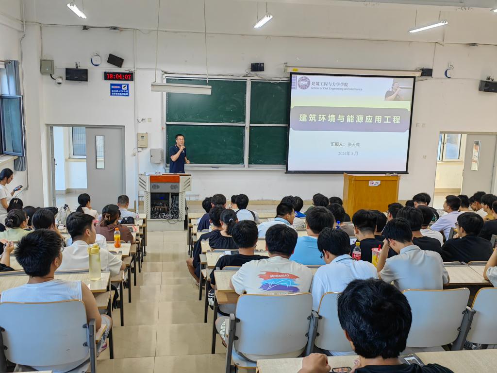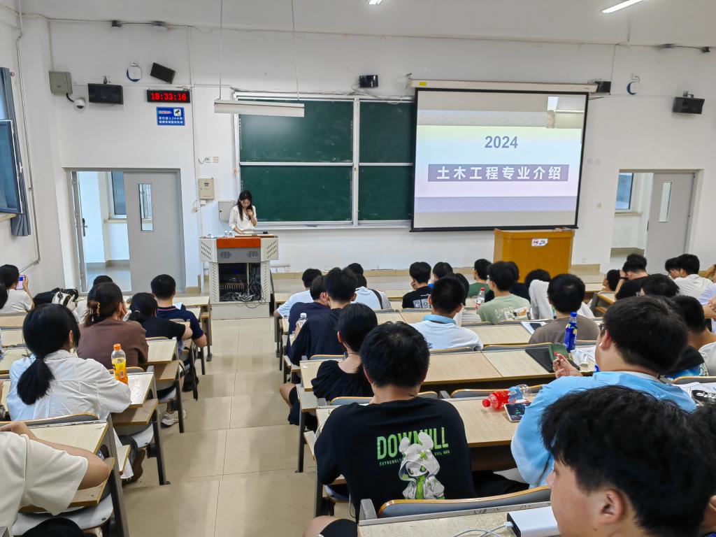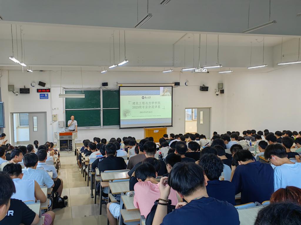 于2024年6月26日晚上在东校区第四教学楼208室,举办了2023级本科生专业分流讲座。讲座以学生线下家长线上的方式进行,院教学副院长胡建军、各专业系主任,2023级土木类全体学生与部分感兴趣的家长参加,线上参会家长300余人次。