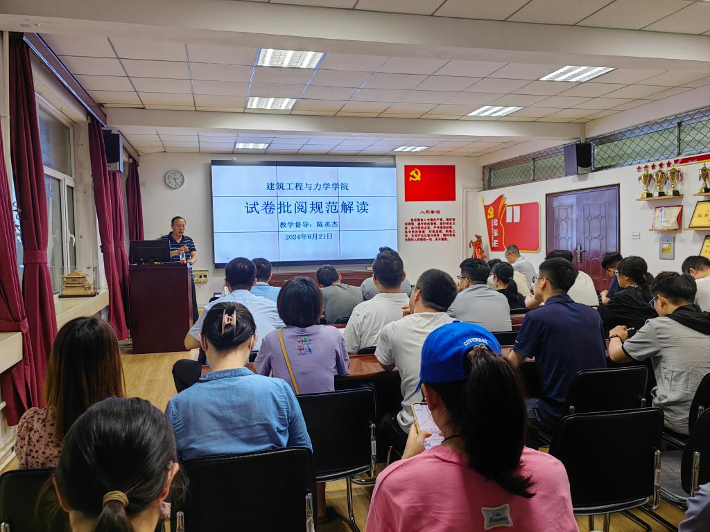 教学督导陈英杰老师为青年教师们解读了试卷批阅规范。陈老师结合自己多年的试卷批阅经验和督导检查时发现的问题,逐条为老师们讲解了试卷批阅流程,还提出首次首份试卷可以先铅笔批阅、批阅核实侯分数更改随手签字等一些实用技巧。