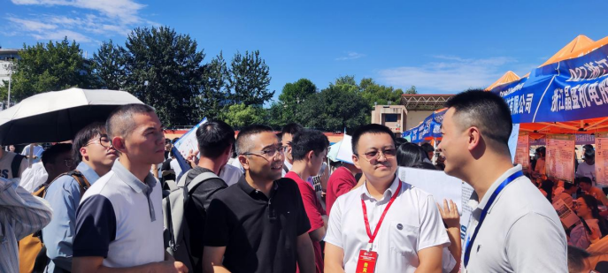 领导先后来到大连华锐重工集团股份有限公司、杭州前进齿轮箱集团股份有限公司等用人单位招聘展位前,与前来招聘的企业代表深入交流,详细了解企业发展和人才需求信息,并询问企业中历届校友们的发展和成长经历。