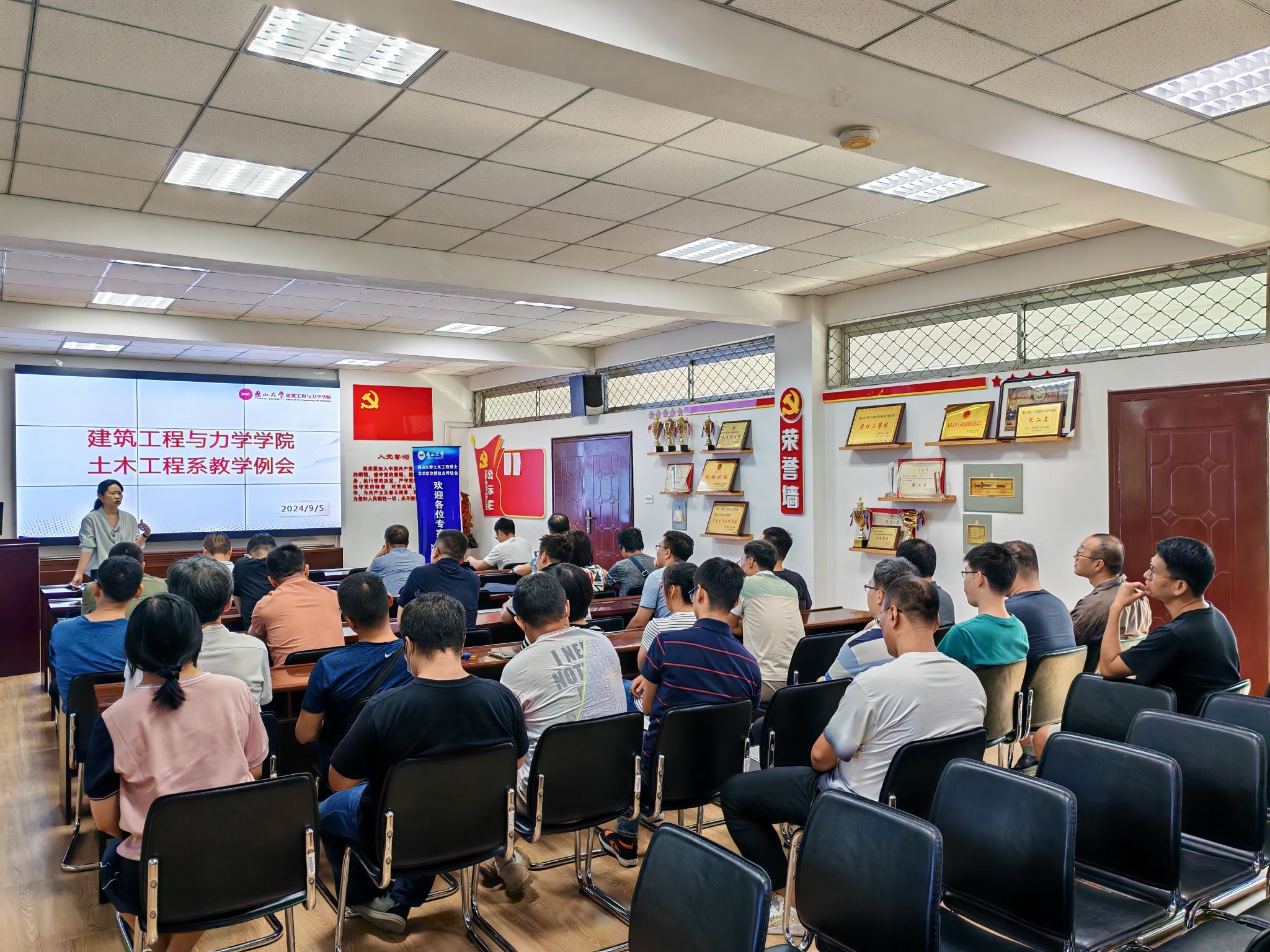 2024年9月5日91在线 土木工程系召开教学例会,向全系教师传达本年度本科教育教学审核评估的工作安排。系主任李雨浓主持会议。