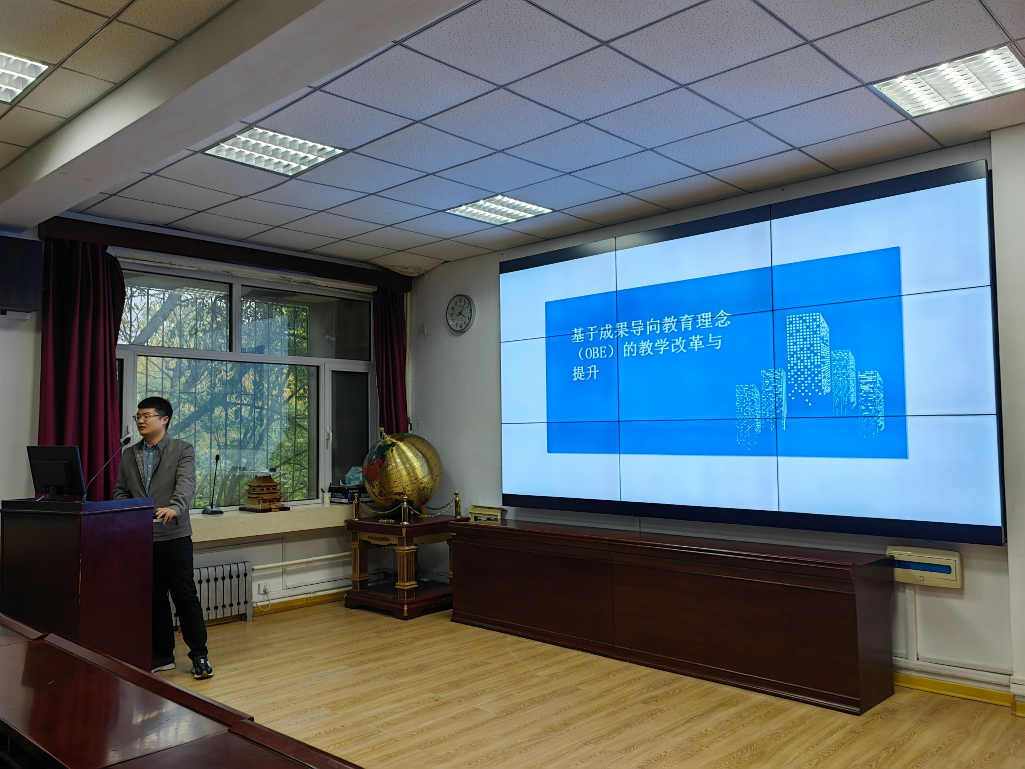 梁林老师就OBE设计指导师在线训练营的培训内容,首先和老师们交流了基于成果导向教育(OBE)理念,包括什么是OBE,如何进行反向设计等。其次,从教学大纲的设计逻辑、以产出为导向的课程目标、保证课程目标对毕业要求的支撑关系、设计与课程目标一致的评价方式和评价标准、设计与课程目标一致的教学内容体系等方面,和老师们分享了如何进行OBE指导下的教学大纲设计。