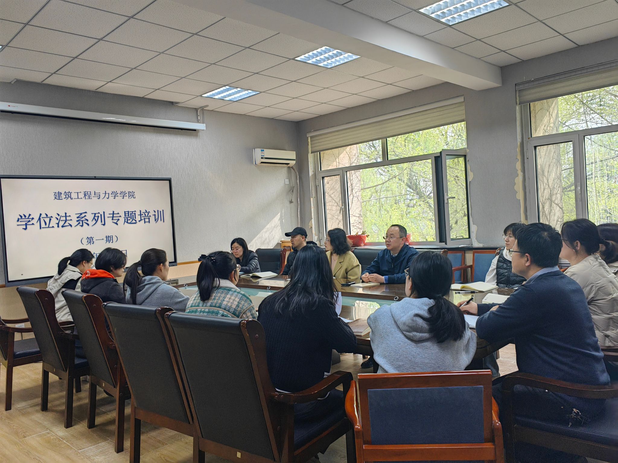 于4月7日在建筑馆203组织机关干部及全体辅导员开展《学位法》专题培训。
