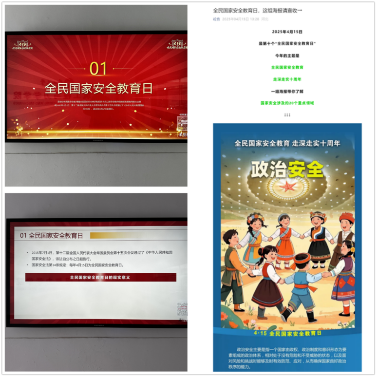 党委积极响应学校《关于组织开展2025年全民国家安全教育日活动的通知》要求,于4月10-4月16日组织开展了系列丰富多样的国家安全教育活动。
