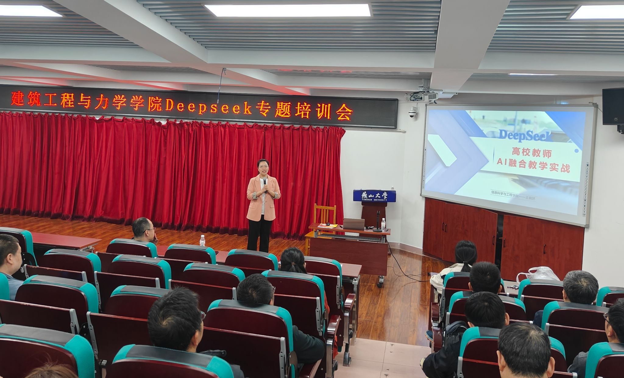 王晓妍副教授在三教320室开展“DeepSeek高校教师AI融合教学实战”专题培训讲座。