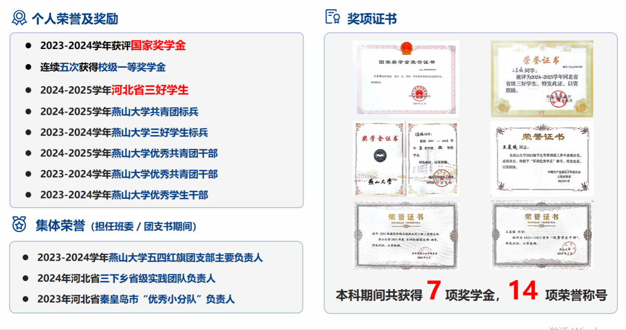 三好学生”等14项荣誉称号